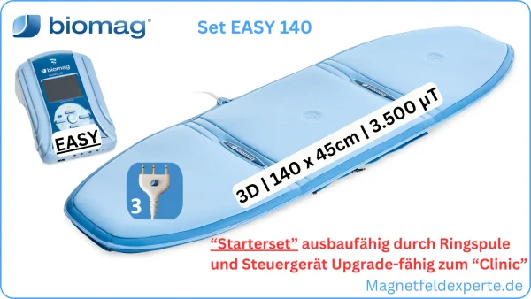 Komplettset mit Steuergerät LUMINA 3D-e EASY und handlicher (140 cm) und leistungsstarker 3-teiliger Magnetfeldmatte mit vielseitigen Einsatzmöglichkeiten.