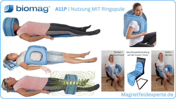 ist die gleichzeitige Behandlung des Kopfes rundum (Ringspule) und des Körpers (Magnetfeldmatte) unverzichtbar!